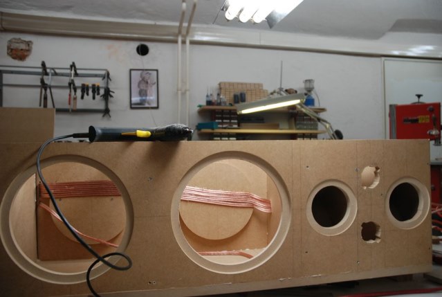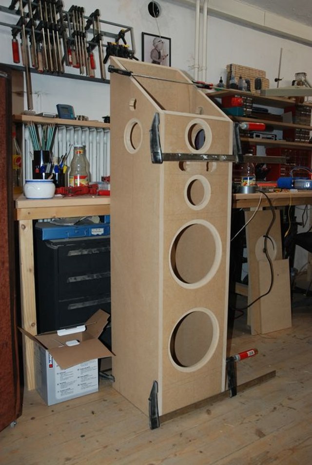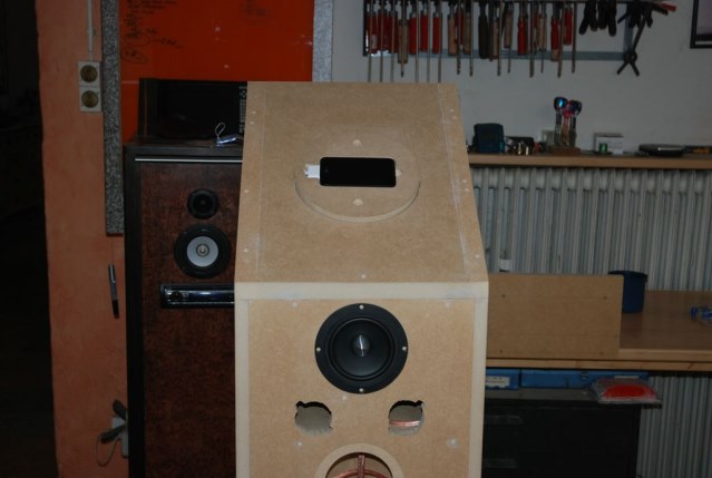 Das Gehäuse ist aus 19 mm MDF.