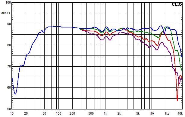 Die nichtlinearen Verzerrungen bei geringen Lautstärken (85 dB, 1 m) liegen oberhalb von 400 Hz unter 0,5 % und bleiben auch bei höheren Pegeln (95 dB, 1 m) im hörbaren Bereich unter 0,6 %.