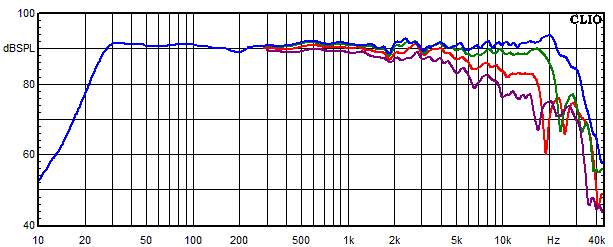Die nichtlinearen Verzerrungen bei geringen Lautstärken (85 dB, 1 m) liegen oberhalb von 600 Hz unter 0,6 % und bleiben auch bei höheren Pegeln (95 dB, 1 m) im hörbaren Bereich unter 1,1 %.
