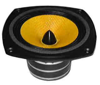 Boomer Médium de 11 cm avec une membrane en kevlar. Le chassis est fabriqué par injection.