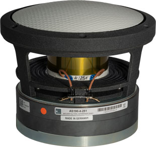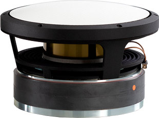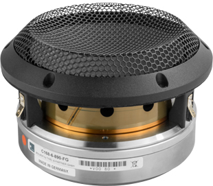 16 cm Mitteltöner mit Keramik-Membran. Ein Magnetsystem mit Neodym-Magneten treibt den Lautsprecher an. Die Unterhangschwingspule bleibt im linearen Betrieb komplett im Magnetfeld. Er hat eine hinterlüftete Schwingspule.