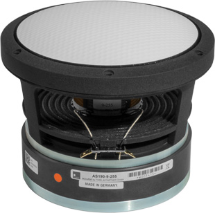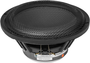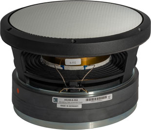 21 cm Tieftöner mit Sandwich-Membran. Ein Magnetsystem mit Neodym-Magneten treibt den Lautsprecher an. Er hat eine hinterlüftete Schwingspule.