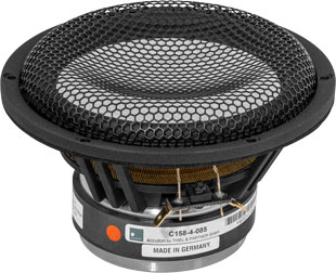 15 cm Tiefmitteltöner mit Keramik-Membran. Er hat eine hinterlüftete Schwingspule.