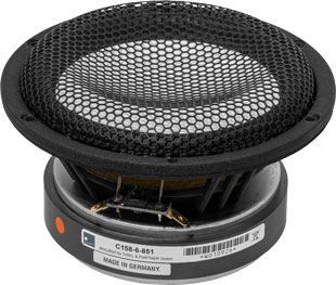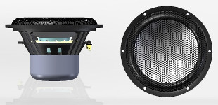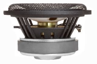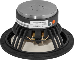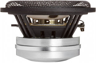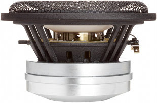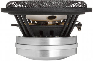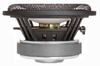 16 cm Mitteltöner mit Keramik-Membran. Er hat eine hinterlüftete Schwingspule.