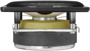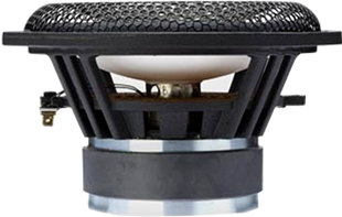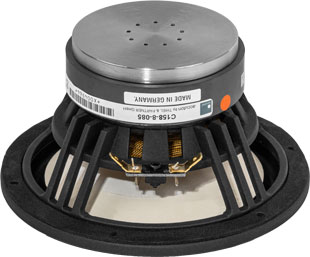 12 cm Tiefmitteltöner mit Keramik-Membran. Ein Magnetsystem mit Neodym-Magneten treibt den Lautsprecher an. Die Unterhangschwingspule bleibt im linearen Betrieb komplett im Magnetfeld. Er hat eine hinterlüftete Schwingspule.