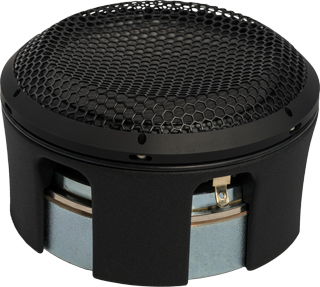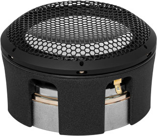 30 mm Hochtöner mit Keramik-Membran. Ein Magnetsystem mit Neodym-Magneten treibt den Lautsprecher an. Die Unterhangschwingspule bleibt im linearen Betrieb komplett im Magnetfeld.