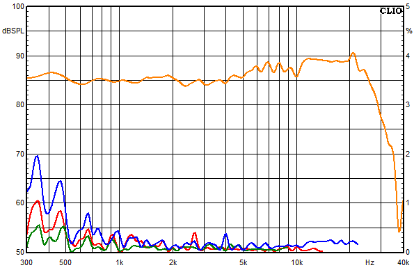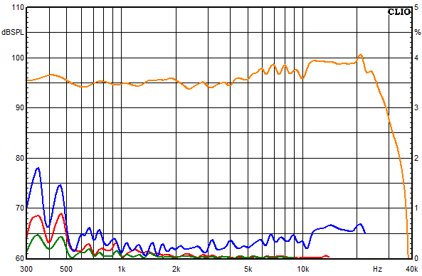 - Blau = Summe aus Hochtöner und Tieftöner auf Achse gemessen