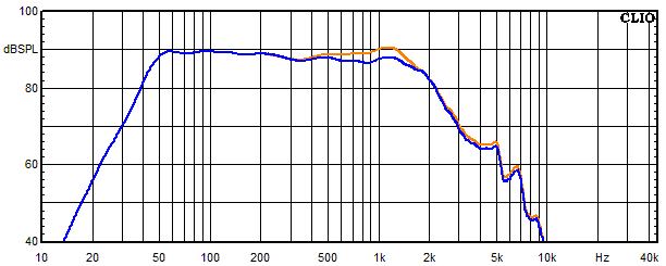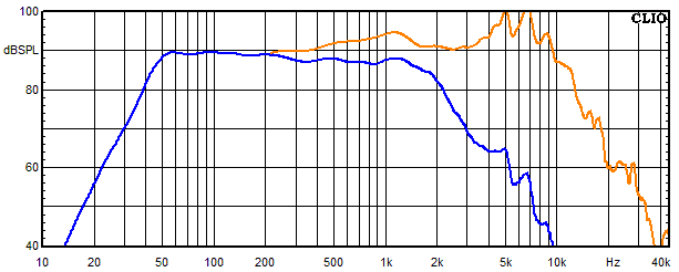 - Blau = Summe aus Hochtöner, Mitteltöner und Tieftöner auf Achse gemessen