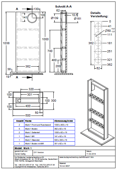 Mark 1 ist ein flacher nur 10 cm tiefer Standlautsprecher, der leicht in jeden Raum integriert werden kann. Er ist mit einem Mark Audio-Breitbandlautsprecher Alpair 10 P ausgestattet.