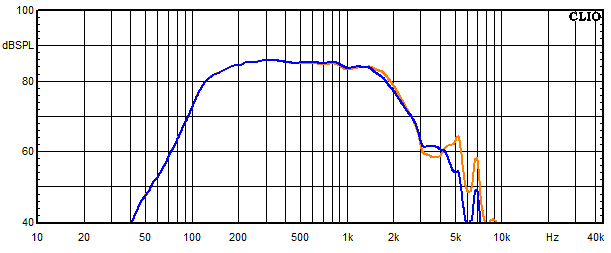 - Blau = Summe aus Hochtöner, Mitteltöner und Tieftöner auf Achse gemessen