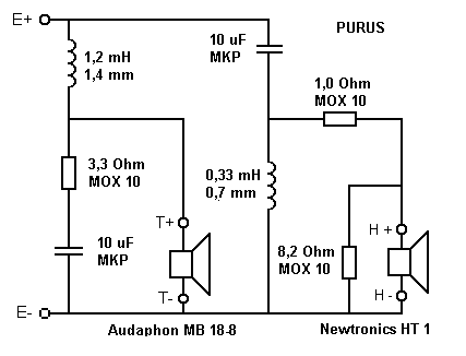 Die Schaltung wird auf Holz aufgebaut und einfach parallel zu den Boxenanschlüssen angeschlossen (E+ mit E+ und E- mit E- verbinden).