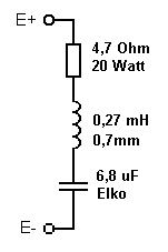 Dann empfehlen wir den Aufbau der links abgebildeten Impedanzkorrektur, die die Impedanz der Box im kritischen mittleren Frequenzbereich ebnet.