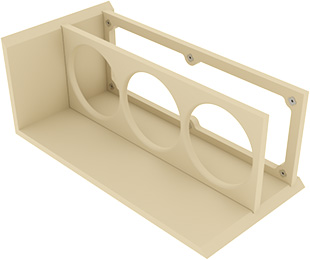 In der Abbildung sehen Sie die Halterung für die Rückwand. Die 6 Einschlagmuttern in die Halterung einpressen.