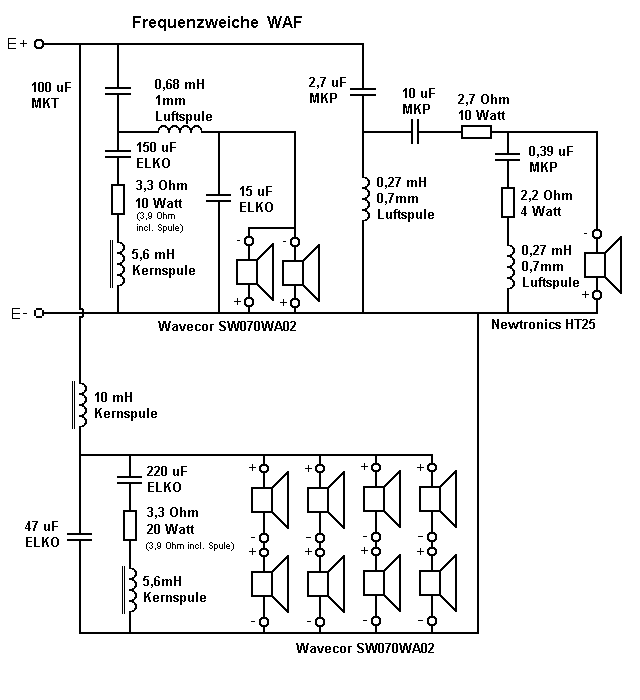 Den Tiefbass machen 8 weitere Wavecor-Tieftöner des gleichen Typs.