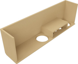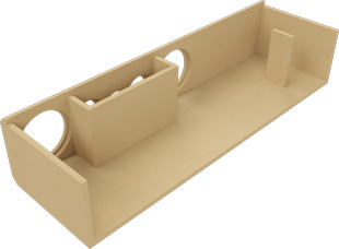 Nun kann die Rückwandhalterung in das Gehäuse eingeklebt werden. Danach kann das Dichtband auf die Rückwandhalterung geklebt werden. Es verhindert, das Austreten der Luft aus dem geschlossenen Gehäuse.