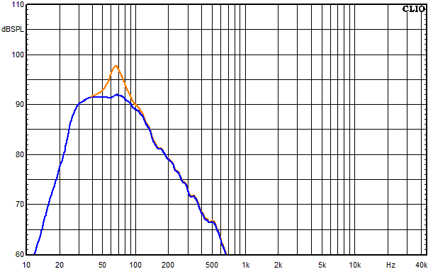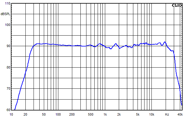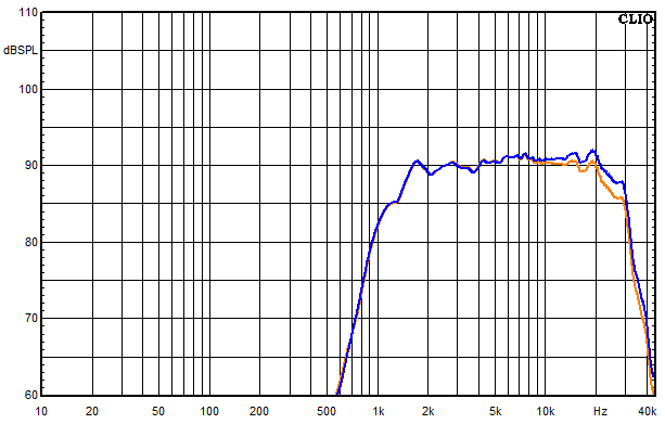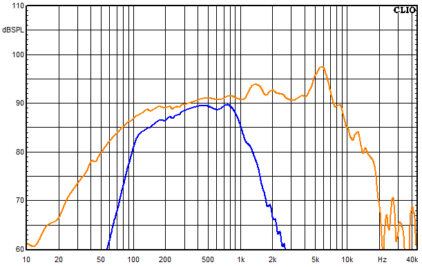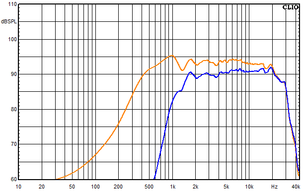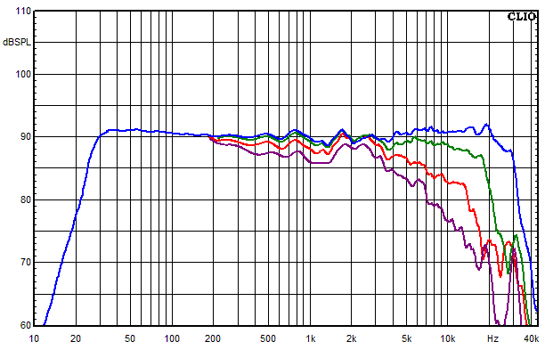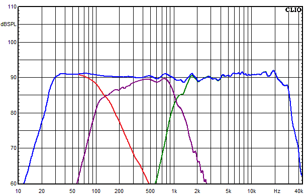 - Blau = Summe aus Hochtöner, Mitteltöner und Tieftöner auf Achse gemessen