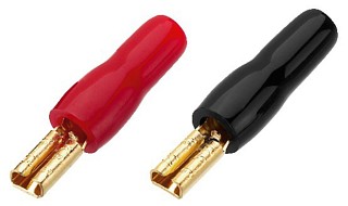 Pair of banana plugs. High-quality, gold-plated version of the 4 mm standard type, solderless fitting up to 4 mm2.