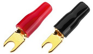 Set of cable lugs (4 pcs.). Gold-plated, for different pin diameters, to be soldered and crimped up to 4 mm2.