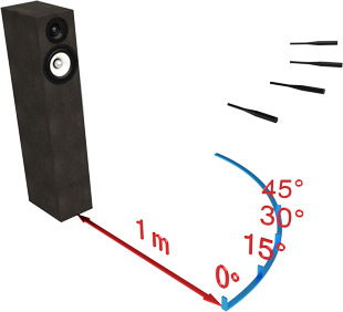 Für die Messung unter Winkel wird das Mikrofon nach der Messung auf Achse (0°) aus Sicht des Lautsprechers in 15° Schritten horizontal verschoben.