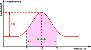 In der Abbildung ist die Bandbreite und die Amplitude der Überhöhung (im Englischen = Peak) dargestellt.