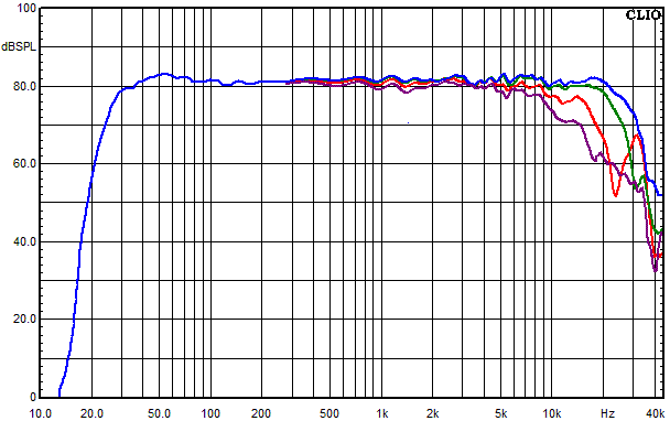durch die Skalierung der vertikalen Achse (dB SPL). Auf der linken Seite kann man einen sehr schönen geraden Frequenzgang sehen.
