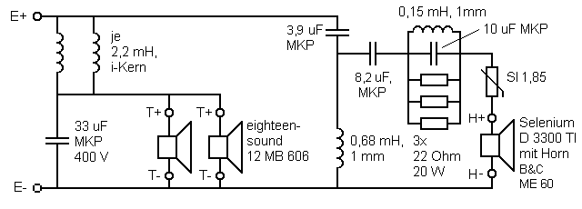 Als Hochtöner wurde der 2 Zoll-Selenium Titan-Treiber D3300 Ti mit dem B&C Horn ME 60 eingesetzt. In dieser Preisklasse war dies der beste 2-Zoll Hochtöner den wir gefunden haben.