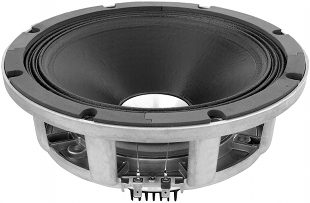 Altavoz de medios 25 cm con membrana Papel . El chasis del altavoz ha sido elaborado mediante fundición inyectada.