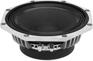Altavoz de medios 21 cm con membrana Papel . El chasis del altavoz ha sido elaborado mediante fundición inyectada. El altavoz incorpora un sistema de imanes de neodimio.